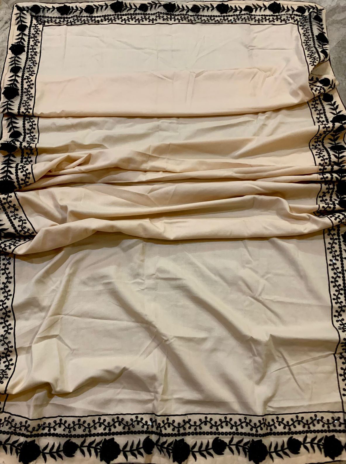 The Charizma Dhanak Embroidered 3 Piece | CA101 is a chic and elegant design that captures the perfect balance between simplicity and sophistication. This three-piece outfit features a black base enhanced with delicate white floral embroidery on the neckline, hem, and sides of the shirt, giving it a graceful contrast and timeless appeal. The embroidery work highlights the finesse of traditional craftsmanship while maintaining a modern touch. The shirt is designed with a straight cut and slightly flared sleeves, making it comfortable yet stylish for both casual and semi-formal occasions.