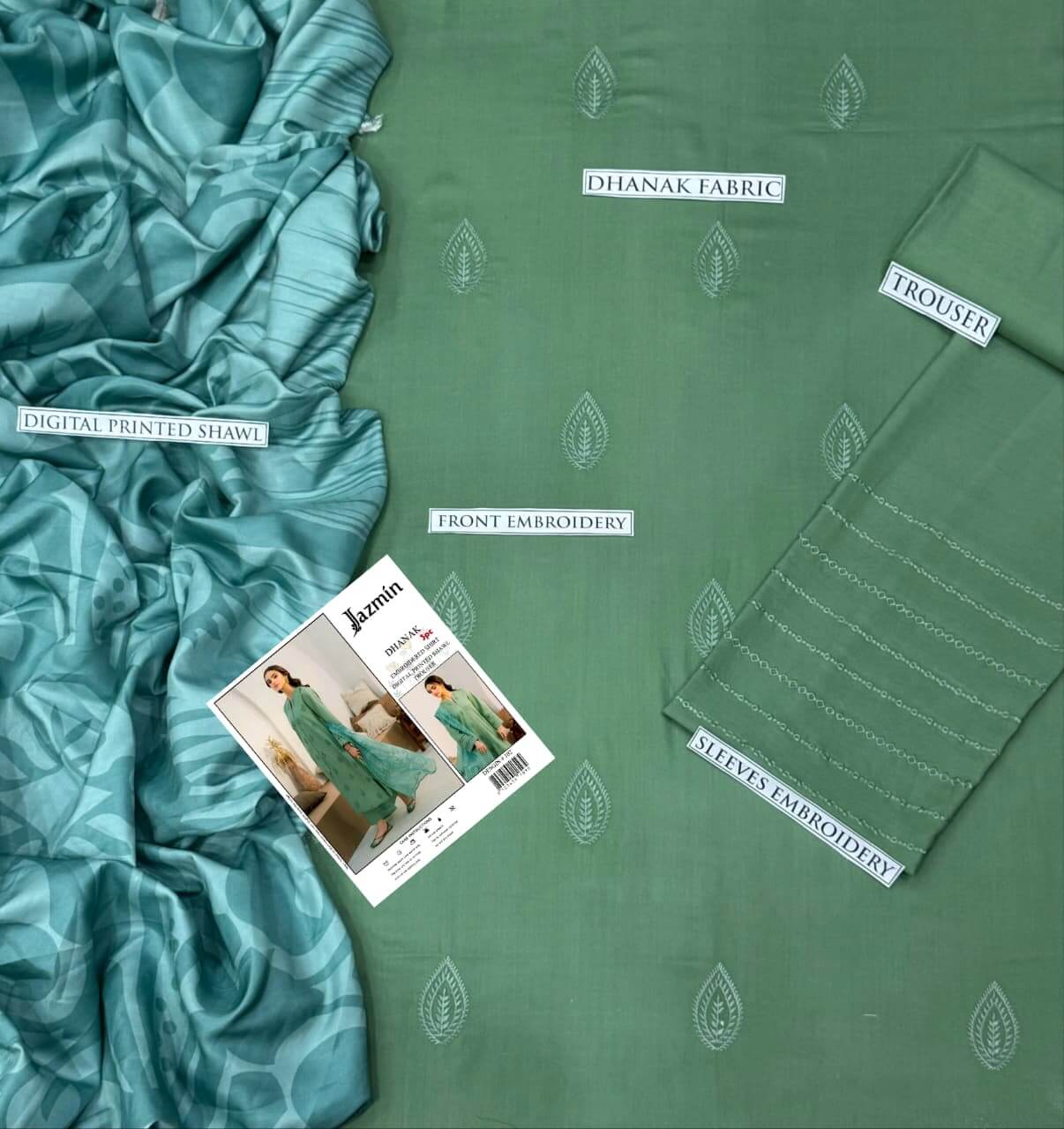 Jazmin Dhanak Embroidered 3 Piece | JZ104 | Trendy Outfits - Anu Jee.